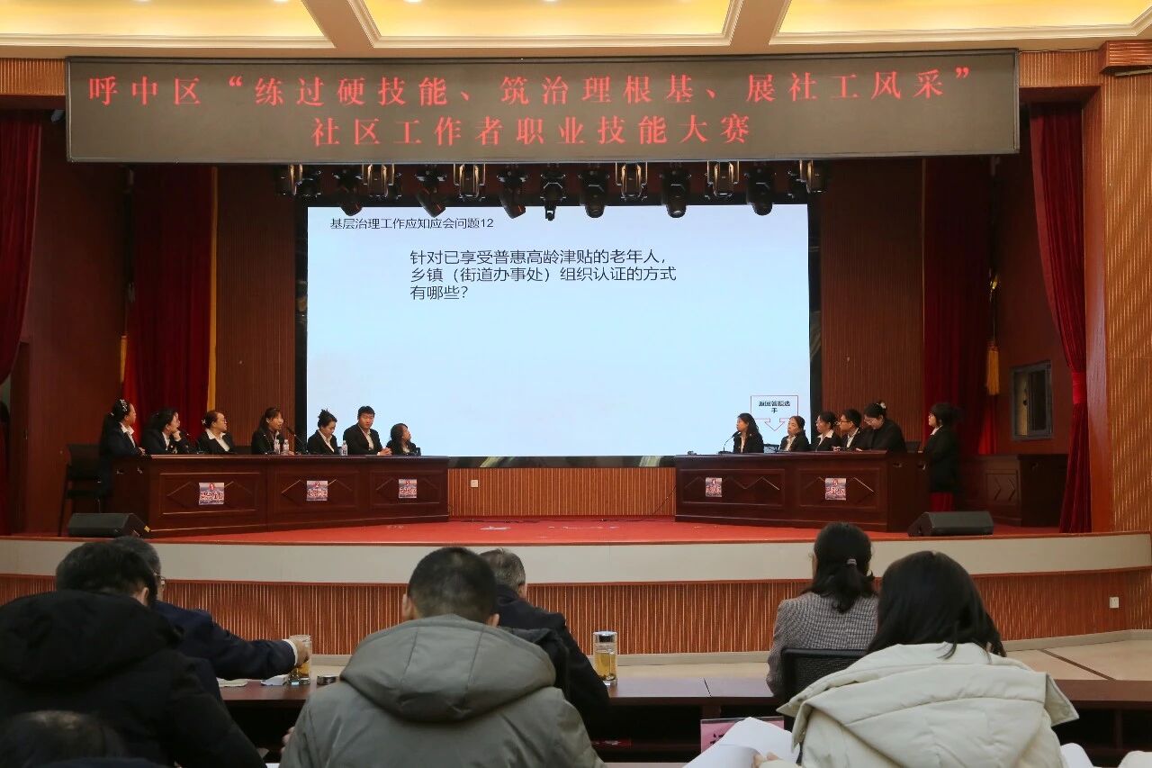 12月11日,呼中区2025年社区工作者技能大赛在新时代礼堂成功举办。呼中区领导张立峰、孙涛、周丽杰、于海波出席活动。