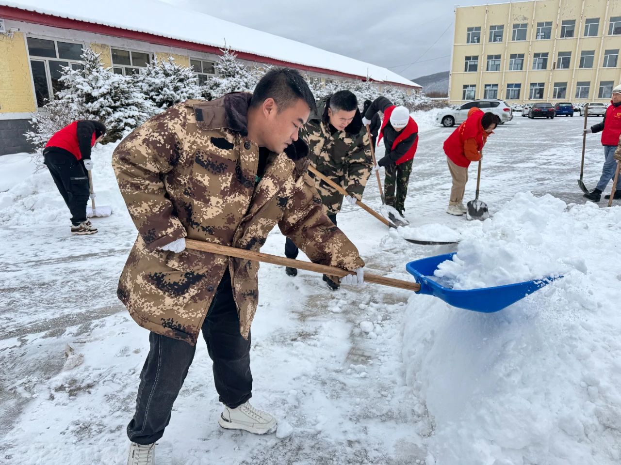 镇党委书记发挥头雁精神,组织党员、志愿者、网格长分组入户,深入困难百姓家中走访慰问,不畏严寒,带着铁锹、扫帚等清雪工具,扫除群众门前积雪、铲掉百姓院内的坚冰,以实际行动展现每个人的责任担当。