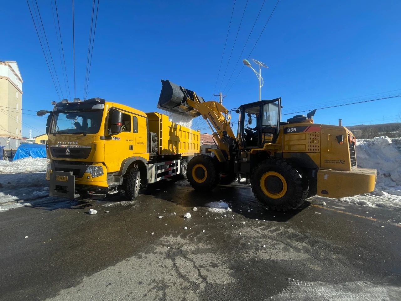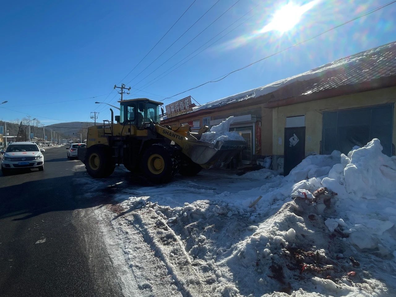 行动中,市政工作人员调配专业清雪设备,全力以赴投入到清雪工作中,对关键路段展开作业,将堆积的积雪铲起,装入转运车清运,经过数小时的奋战,主干道上的积雪已基本清除。此次春雪清理行动,不仅保障了居民的出行安全,更彰显了呼中镇党委的凝聚力和向心力,让人们在乍暖还寒的春日里感受到温暖。