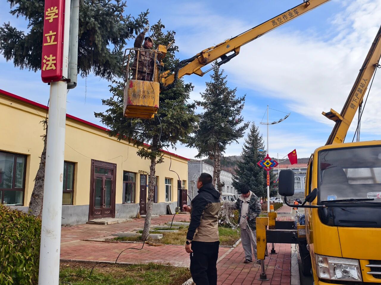 10月10日,呼中镇组织职工开展悬挂彩灯活动,照亮居民“夜归路”,不断提升居民生活幸福感与归属感。