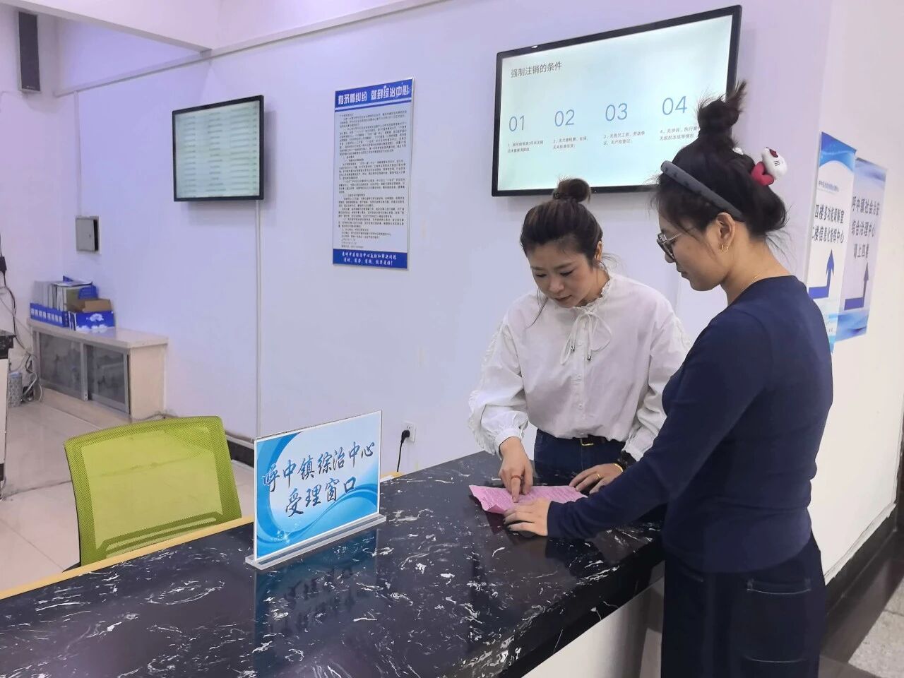 宏伟镇综治中心各功能区有序运转,形成矛盾纠纷“受理—分流—调处—确认—回访”全周期服务,法律咨询区工作人员“接诉即办”,保障实现“只进一扇门、依法解纷争”。