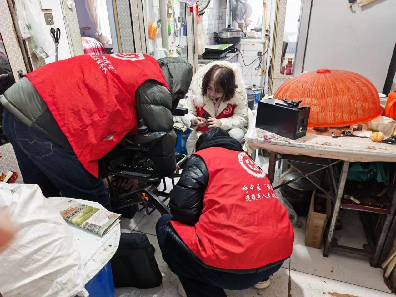 为深入学习贯彻党的二十届四中全会精神及习近平总书记关于退役军人工作的重要论述,切实把党和政府的关怀转化为看得见、摸得着的实惠。近日,呼中区退役军人事务局开展"上门送轮椅 温情暖军心"慰问活动,将电动轮椅精准送到伤残军人手中,以务实举措破解出行难题,彰显对退役军人的尊崇与关爱。
