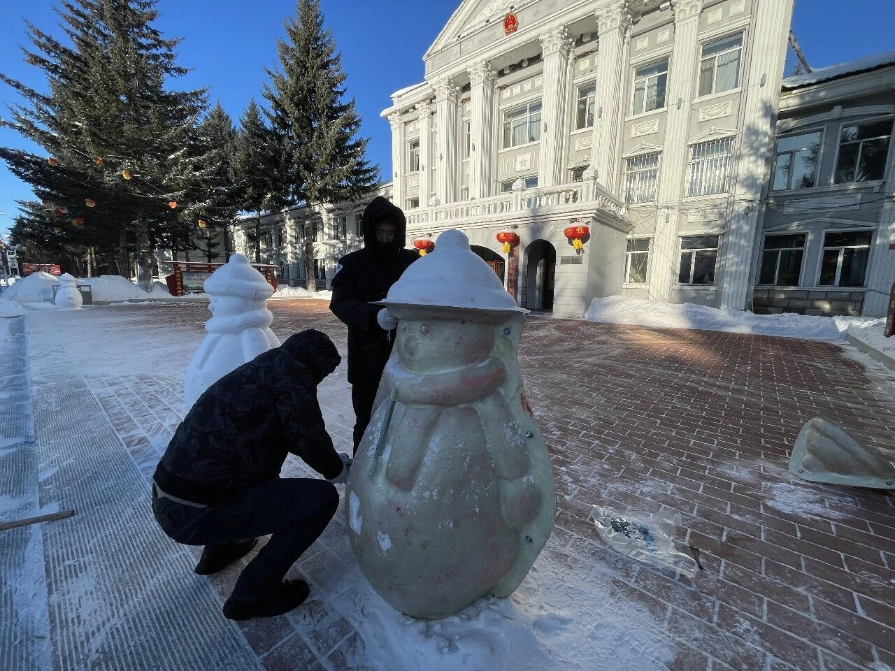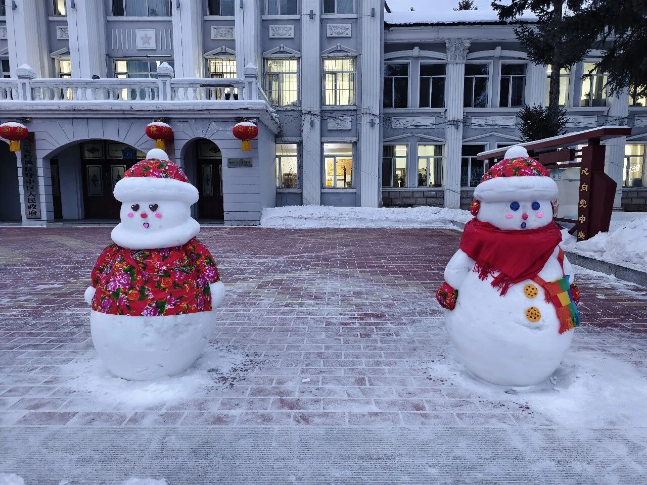 活动现场,呼中镇机关干部热情高涨、分工协作,铲雪、堆塑、装饰有条不紊地推进。一个个造型生动的雪人“亮相”在区、镇两级政府门前,有的身披东北民俗印花服饰,有的戴着喜庆碎花帽,憨态可掬;一排排错落有致的雪墙矗立在单位门庭两侧,与盏盏彩灯交相辉映,勾勒出独具特色的冬日风景线。大家在欢声笑语中挥洒创意,不仅用双手扮靓了人居环境,更丰富了文化生活,传递了新春暖意。