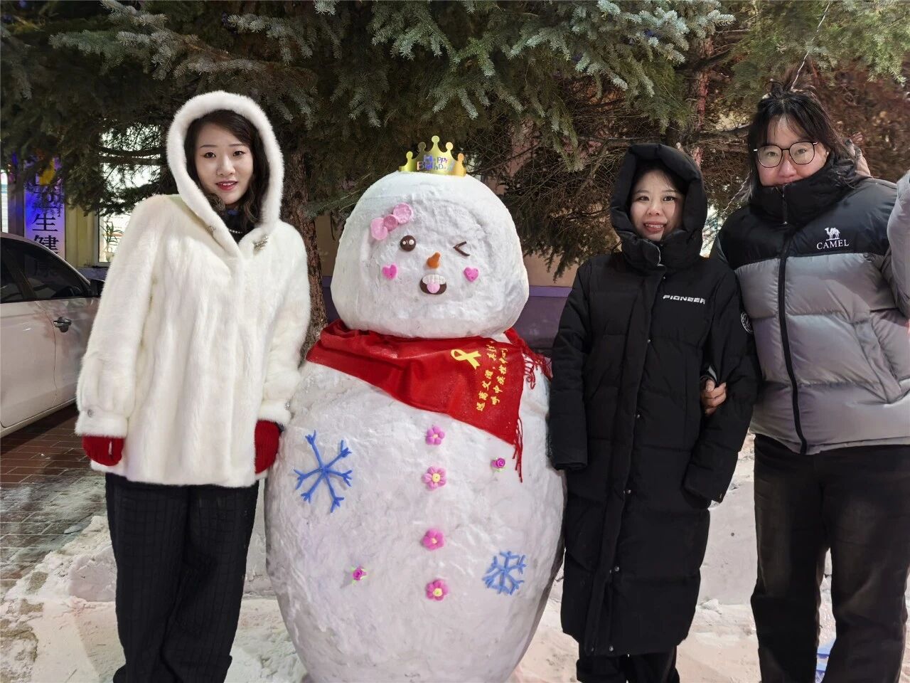 活动现场,寒意袭人却挡不住大家高涨的热情。卫健局的工作人员们早早便来到单位,迅速分工协作,开启了一场充满趣味的冰雪创作之旅。大家充分发挥创意与巧思,将普通的积雪变成了一个个憨态可掬的雪人造型。为了让雪人更具灵气,大家精心打磨每一处细节,还贴心地为它们戴上精致的小皇冠,系上鲜艳的红围巾,点缀上五彩斑斓的雪花装饰,再勾勒出弯弯的眉眼、俏皮的嘴巴,一个个原本冰冷的积雪瞬间焕发出灵动的生机,仿佛摇身一变成为了冬日里的小精灵。