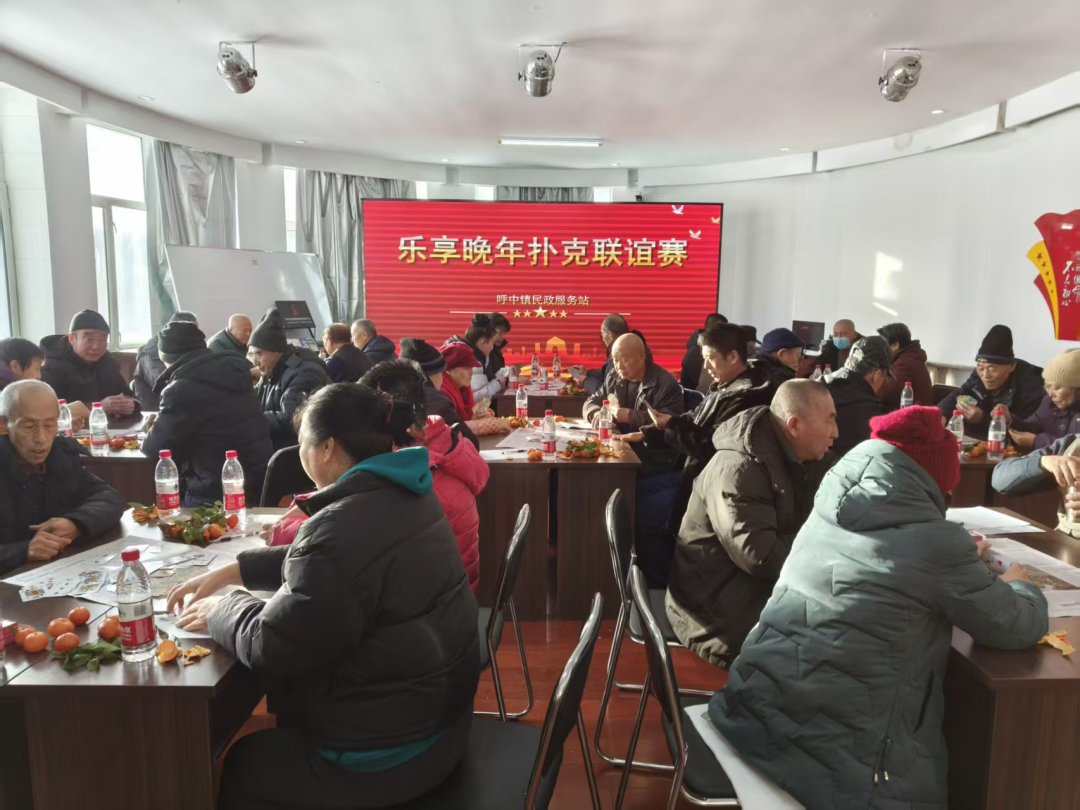 近日,呼中镇民政服务站热闹非凡,一场专为老年人打造的扑克比赛在此温情开赛。来自呼中镇两个社区的50余名老年扑克爱好者齐聚一堂,以牌为媒切磋技艺、增进情谊,在欢声笑语中展现着晚年生活的活力与风采。