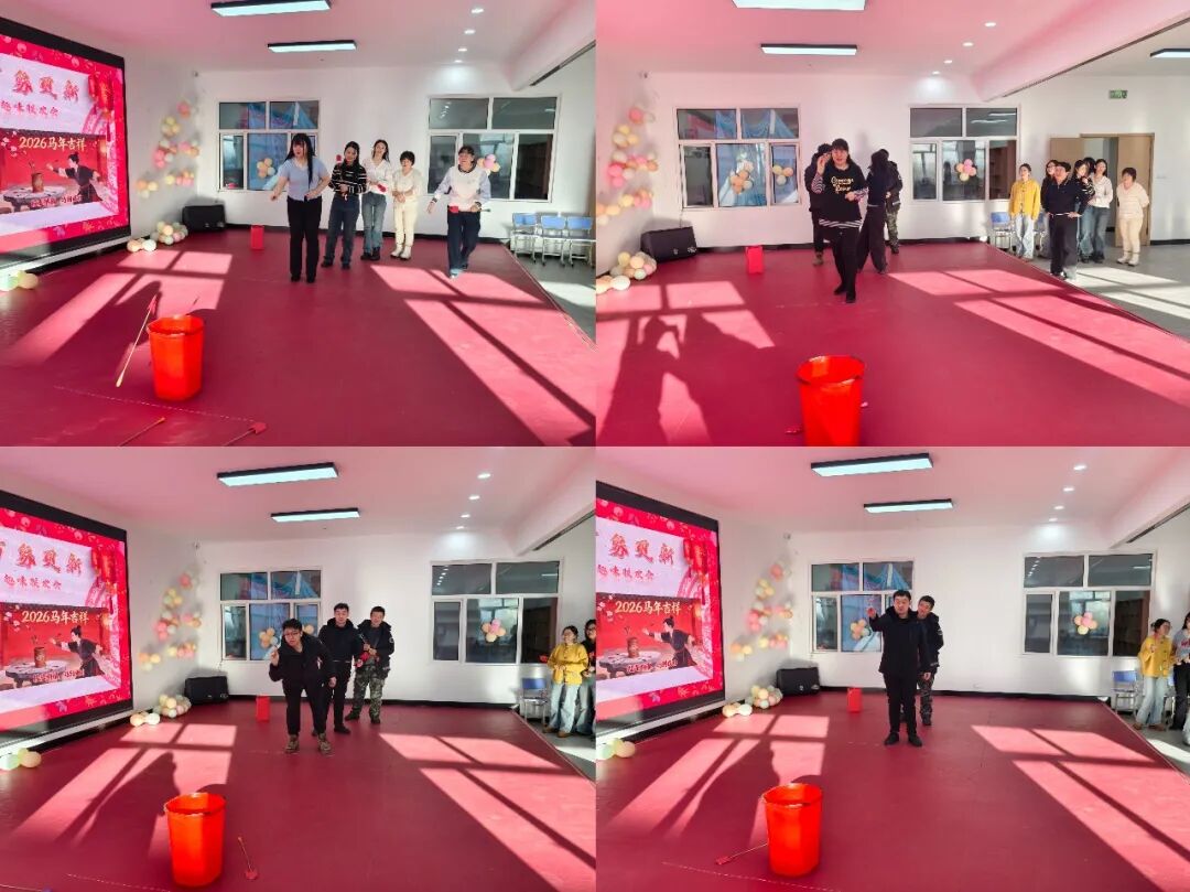 联欢会在呼中镇党委负责人致辞中拉开帷幕。趣味游戏环节首先点燃了全场热情,“马年投壶纳福来”“喜踏气球吉庆响”“成语祝福迎新年”等游戏轮番登场。大家默契配合、欢乐竞技,在协作与笑声中拉近了彼此的距离,活动室内充满了轻松愉快的喝彩与欢笑。棋牌竞技活动将现场氛围推向高潮。期间穿插的才艺展示环节更是亮点频出,深情优美的歌曲《人间》《童年老家》《人在旅途》《阳光总在风雨后》接连唱响,悠扬旋律与励志歌词交汇,传递出对生活的热爱与期盼,充分展现了职工们的才华与活力。