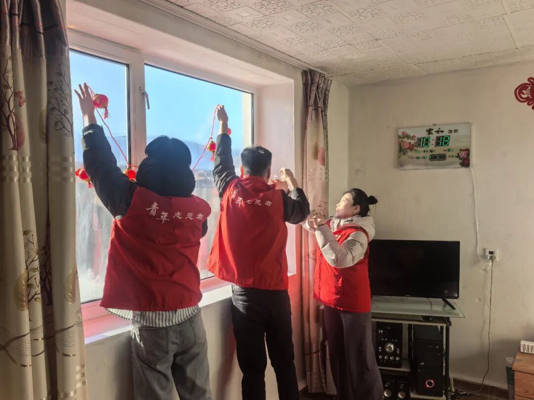 配送当天,志愿者们带着打包整齐的新年用品再次登门,不仅将物资亲手送到群众手中,还主动帮忙悬挂对联、张贴福字、安装彩灯,用双手为群众的家中装点出浓浓的年味儿。