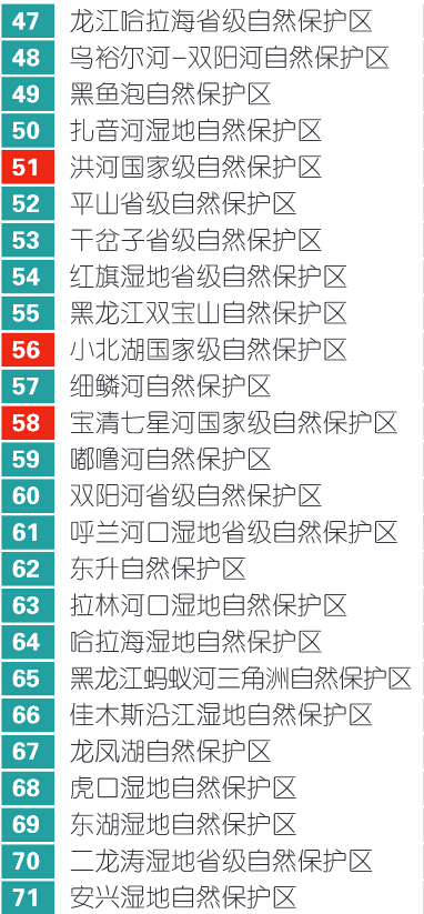 据王仁春介绍,我省仅天然湿地就可以分为河流、湖泊、沼泽、人工等4大类15型。最常见是湖泊湿地,比如兴凯湖湿地;近年来,我省也新兴了一批沼泽湿地,游客在游览的过程中可以身临其境地感受沼泽湿地的生态防洪功能,比如扎龙湿地;而人工湿地主要包括水田、水渠、人工湿地公园等;此外,现在还有一些未开发的“处女地”湿地,如大沾河湿地、南瓮河湿地等,这些自然保护区现阶段人迹罕至,生态系统比较完整。