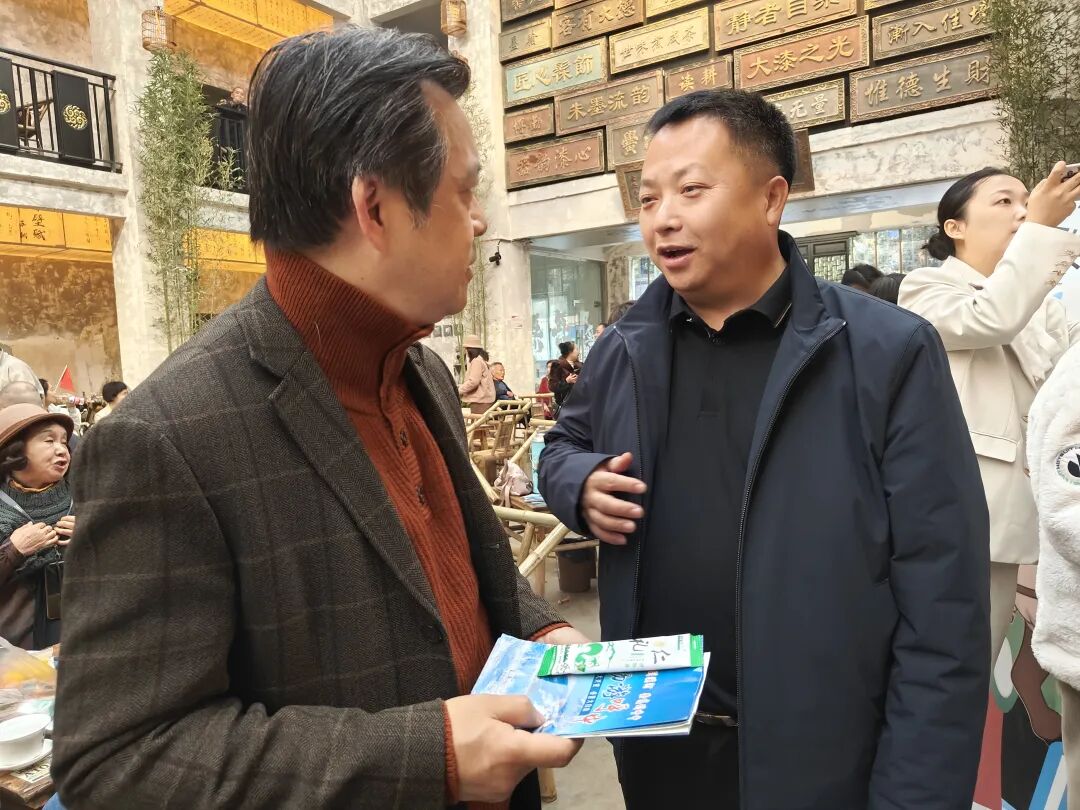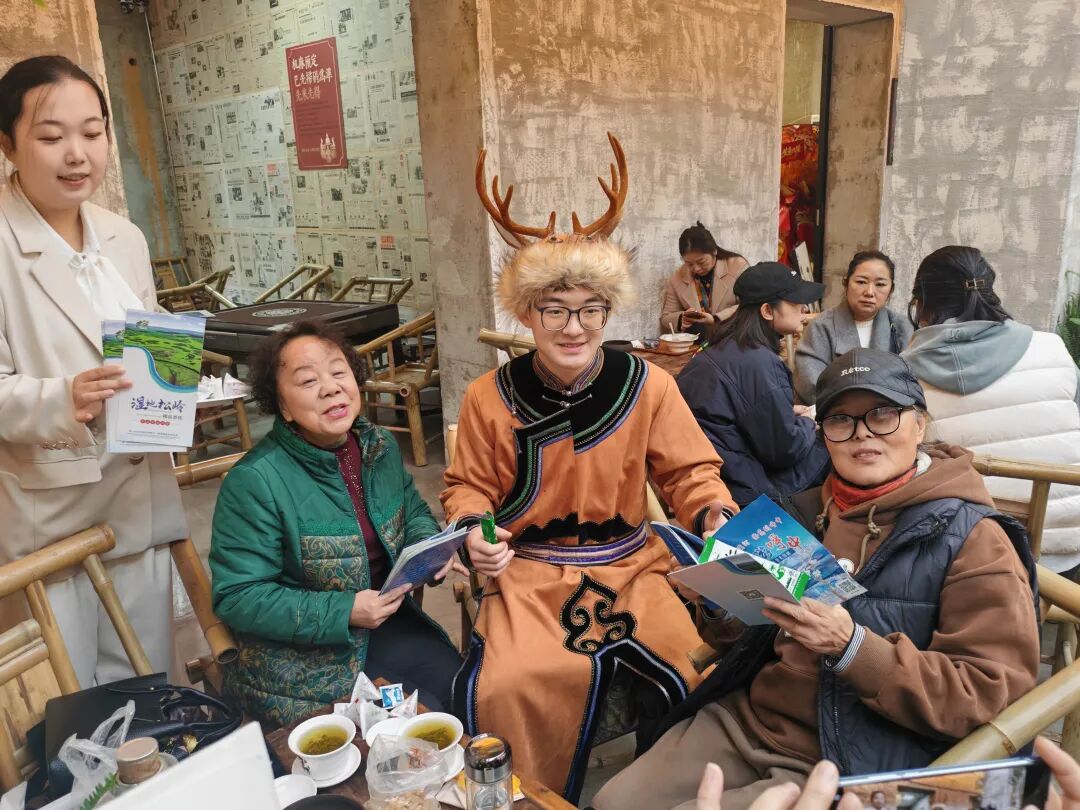 活动现场,茶楼内的展示区域围绕“北国冰雪”主题精心布置。偃松仁、冰箱贴、钥匙扣、烙画、版画等特色展品有序陈列,供到场嘉宾与市民近距离参观品鉴;呼中冬季风光宣传片循环播放,林海雪原的壮阔、极光奇景的绚烂、冰河红柳的静谧等画面,生动诠释了呼中冬季旅游的核心吸引力。推介人员通过发放宣传折页、现场讲解等方式,详细介绍呼中系列旅游产品,包括极地观光、民俗体验、极寒挑战等特色项目,并同步解读配套服务保障措施,让在场观众深入了解呼中冬季旅游优势。