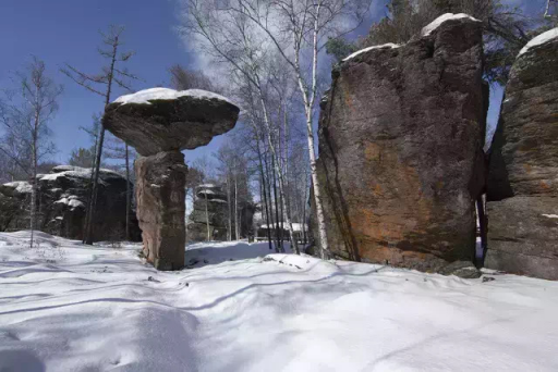 2. 呼中区大白山AAA级景区:大兴安岭北段最高峰,登山可俯瞰连绵林海。夏季杜鹃花漫山遍野,秋季层林尽染,冬季银装素裹。