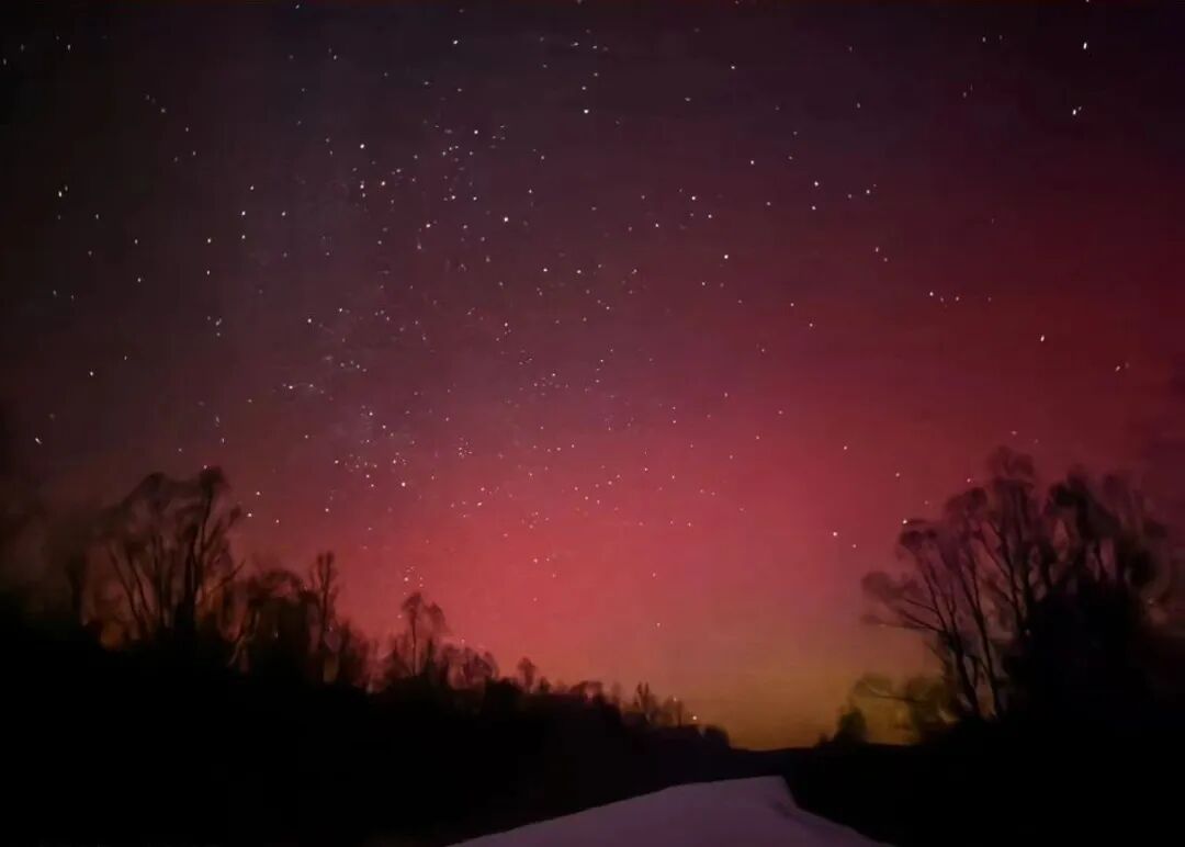20日清晨,有呼中镇居民拍摄到肉眼就能看到天空中的明显“幸运色”极光,整片天空仿佛都被绚丽的红色极光点亮。当晚还有不少居民也看到了此次极光,神奇的体验让他们直呼“太幸运了”。