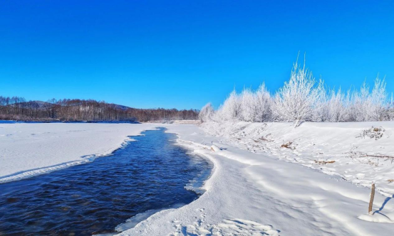 走进冬季的呼中,空气凛冽如刀,呼吸间,鼻腔里是清冷的、带着松香的寒意。举目望去,呼玛河早已停止奔腾,化作一条洁白的玉带;连绵的群山覆盖着厚厚的雪被,线条变得温柔;森林里每一棵樟子松、白桦的枝桠,都包裹着晶莹的雾凇,风过时,簌簌落下钻石般的冰晶。