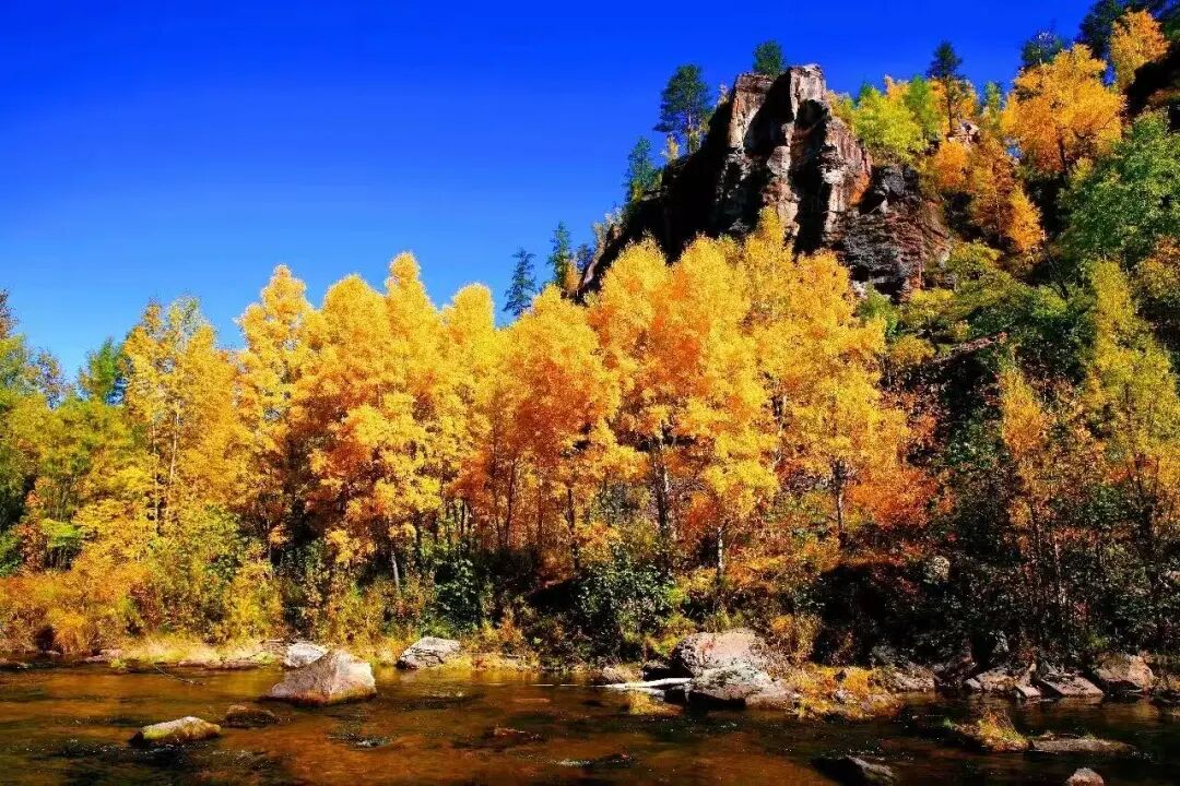 秋季山林色彩丰富,当地称为“五花山”时节。樟子松的墨绿、白桦的鹅黄、落叶松的金黄、以及灌木的绯红与绛紫交织,色彩层次分明。