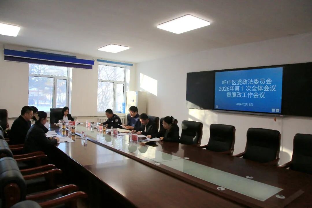 2月3日,呼中区召开2026年区委政法委员会第1次全体会议暨廉政工作会议。区委常委、政法委书记周丽杰出席会议,呼中区领导孙钊、牟静丰,王鹏及区委政法委员会在家委员参加会议,区纪委派驻组组长参会指导工作。