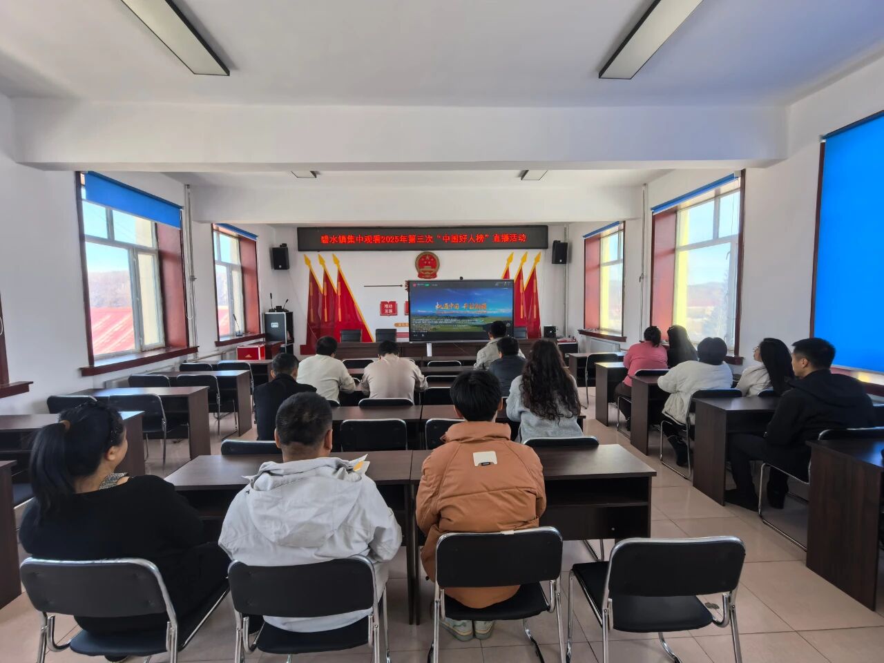 伟大时代呼唤伟大精神,崇高事业需要榜样引领。为深入学习“中国好人”先进事迹,弘扬社会主义核心价值观,10月15日,碧水镇新时代文明实践所(站)组织全镇职工集中观看2025年第三次“中国好人榜”直播,在全镇掀起“学好人、敬好人、做好人”的热潮。
