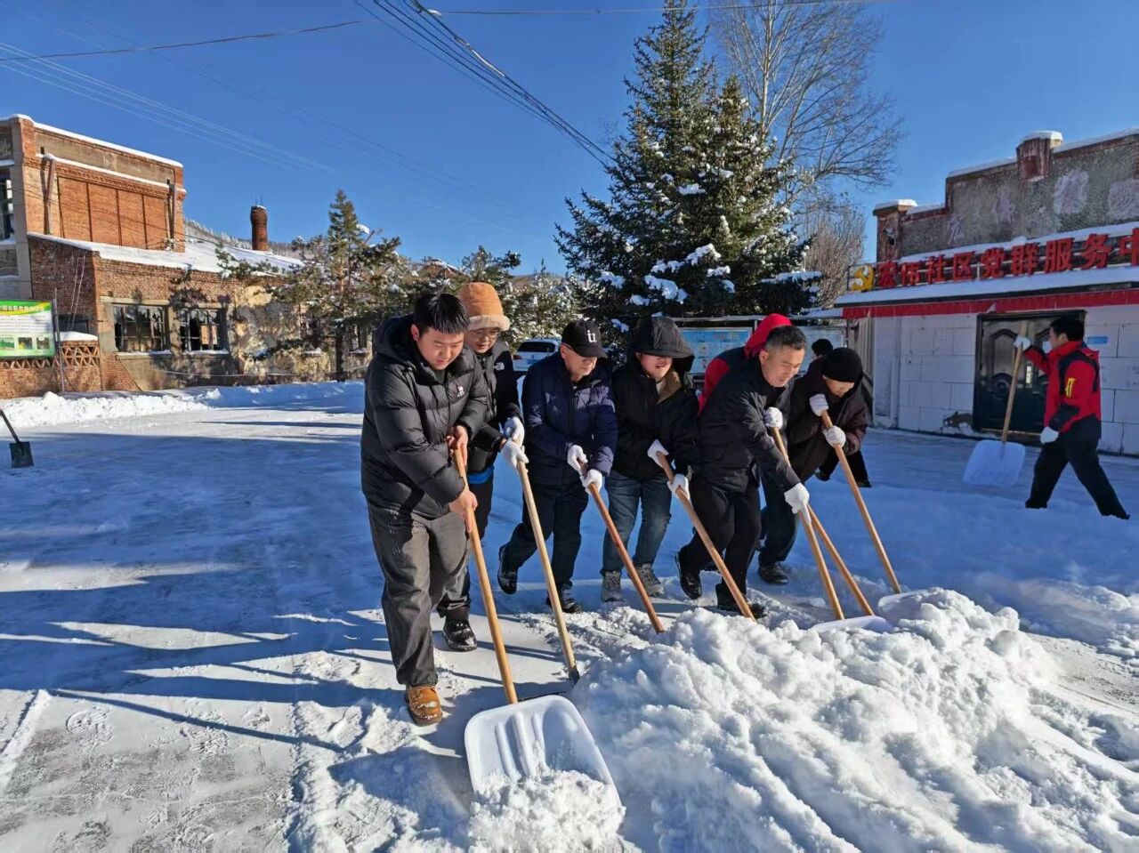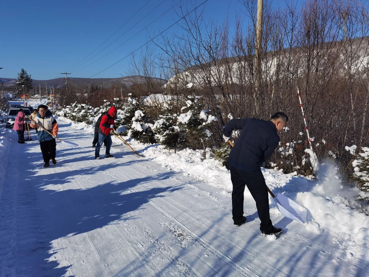行动中,干部职工们不畏严寒,手持铁锹、推雪板等工具,全力投入到清雪工作中。大家分工协作、配合默契,重点对镇内主要干道、十字路口及公共区域进行集中清理。一个个忙碌的身影在皑皑白雪中构成了一道温暖而活力的风景线。经过数小时的连续奋战,被积雪覆盖的道路逐渐恢复原貌,安全通畅的出行环境得以迅速重建。