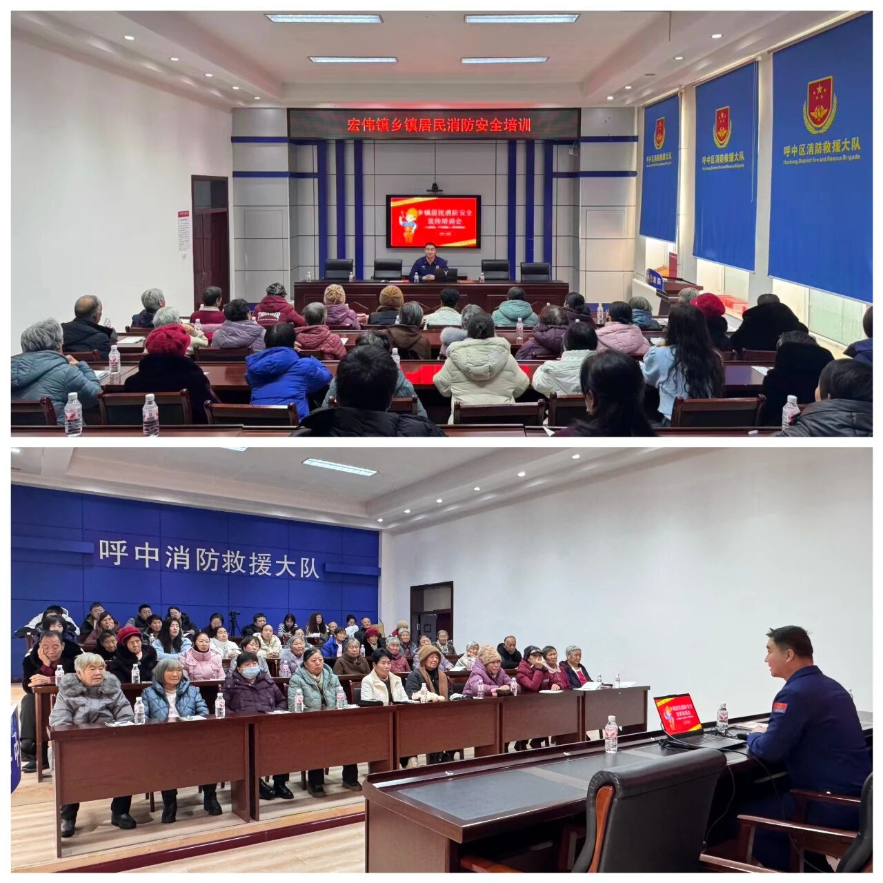 2025年11月是第34个全国消防宣传月,为深入贯彻落实习近平总书记关于安全生产和消防安全重要指示批示精神,进一步强化宏伟镇全民消防安全意识,普及火灾预防、隐患排查与应急自救知识。11月27日,宏伟镇联合呼中区消防救援大队开展以“全民消防 生命至上”为主题的消防安全教育活动。镇政府全体工作人员、社区工作人员及镇内居民共同参与,沉浸式学习消防知识,提升应急自救能力。