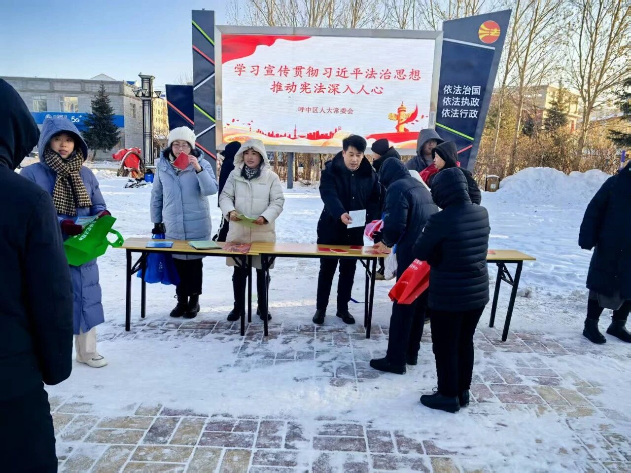 集中宣传解民忧,法治护航新生活。在呼中区法治广场与司法部门联合设立咨询台,区人大代表与司法部门工作人员携手“坐诊”,向过往群众普及宪法基本知识、公民基本权利义务、婚姻家庭相关法律法规等内容,耐心解答群众关于婚姻家庭、财产继承、权益保障等方面的法律疑问,精准回应群众法律诉求,切实化解法律困惑,进一步夯实了全面依法治区的社会基础。
