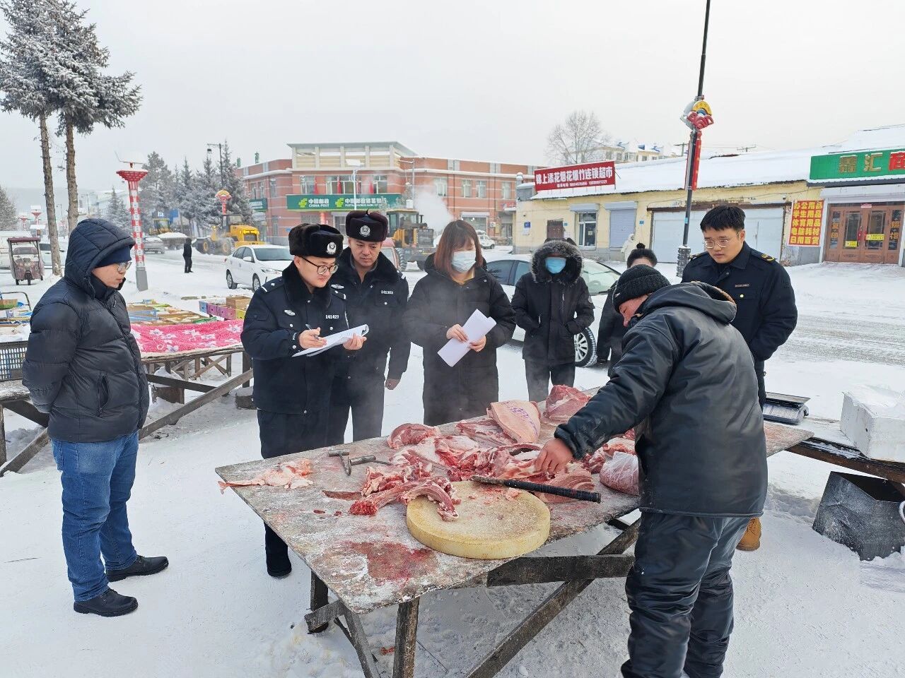 为切实保障元旦节日期间广大人民群众“舌尖上的安全”,严厉打击肉制品领域违法犯罪行为。12月24日,呼中区公安局环食药侦大队联合区市场监督管理局、区农业农村局,在辖区范围内组织开展肉制品市场专项联合检查行动。