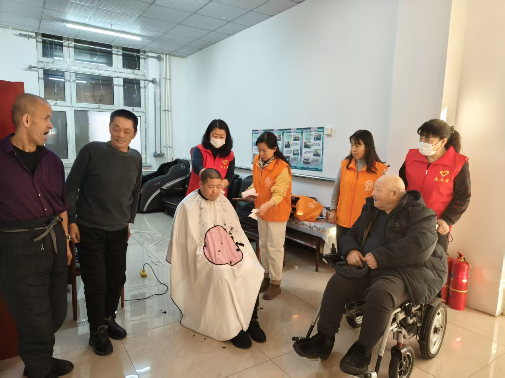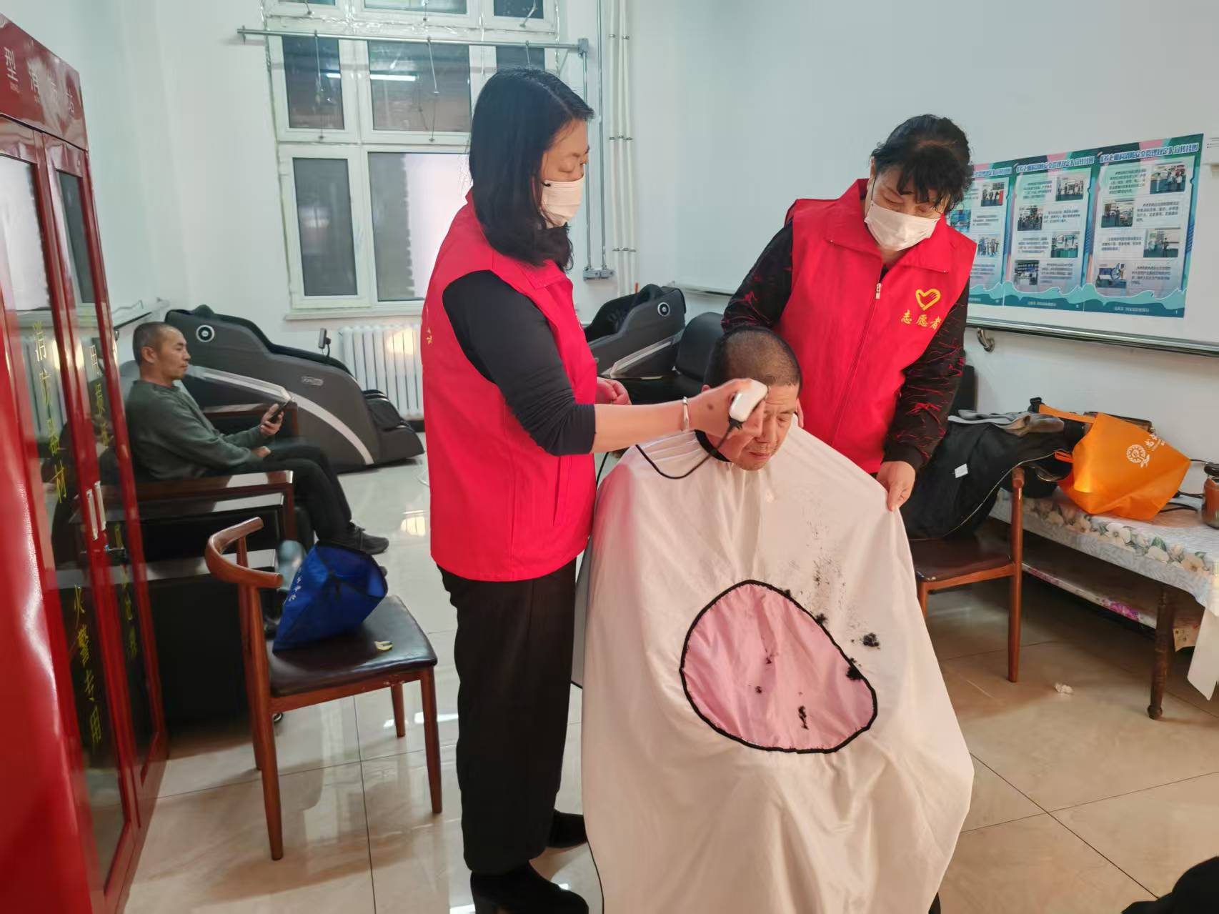 另一组志愿者则化身“义务理发师”,在屋内搭起临时理发点。老人们闻讯后,纷纷排起长队,脸上洋溢着期待的笑容。志愿者理发师们耐心细致地询问每位老人的需求,根据他们的喜好和脸型精心修剪发型。剪刀上下翻飞间,老人们原本凌乱的头发变得整齐利落,精神面貌也焕然一新。理完发的老人对着镜子喜笑颜开,不停地向志愿者道谢:“谢谢你们,这下我精神多啦,开开心心过元旦!”