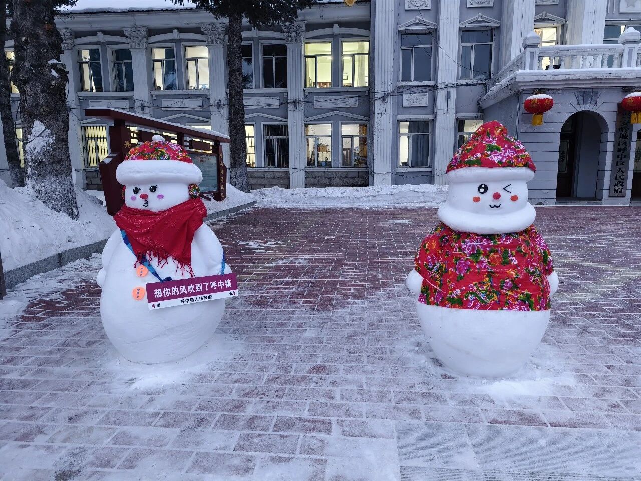 活动现场,呼中镇机关干部热情高涨、分工协作,铲雪、堆塑、装饰有条不紊地推进。一个个造型生动的雪人“亮相”在区、镇两级政府门前,有的身披东北民俗印花服饰,有的戴着喜庆碎花帽,憨态可掬;一排排错落有致的雪墙矗立在单位门庭两侧,与盏盏彩灯交相辉映,勾勒出独具特色的冬日风景线。大家在欢声笑语中挥洒创意,不仅用双手扮靓了人居环境,更丰富了文化生活,传递了新春暖意。
