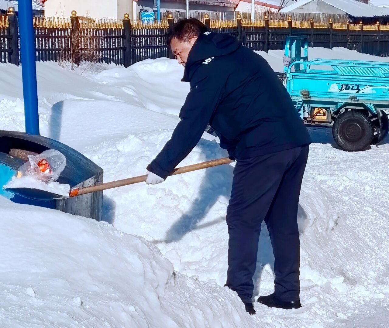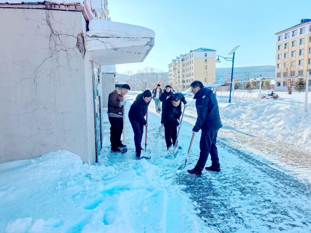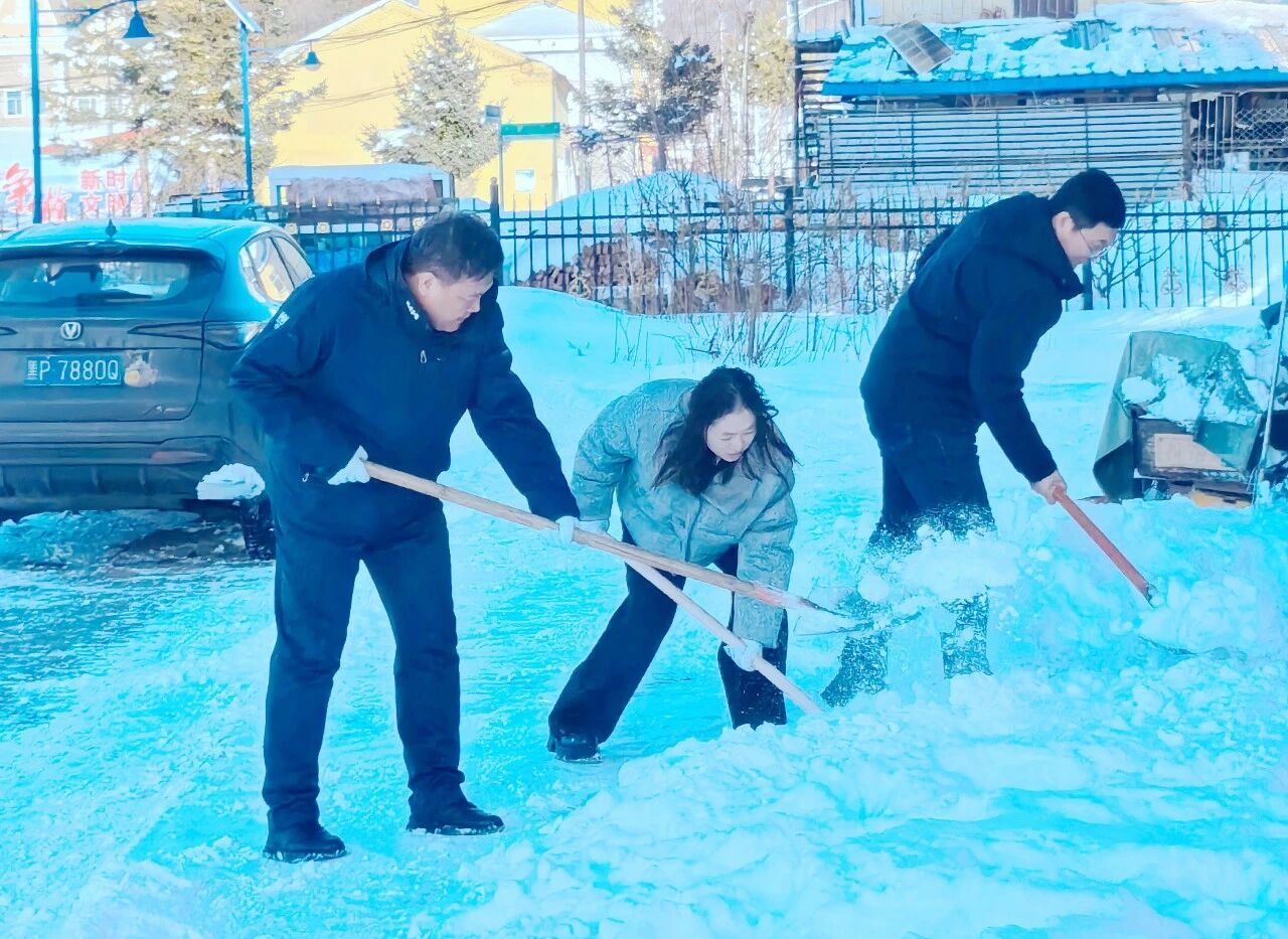 近日,呼中区交通运输局党支部组织在职党员、入党积极分子深入网格,开展“雪映初心 情暖民心”清冰除雪志愿服务活动,用一抹“志愿红”温暖寒冬,守护群众平安。副区长李斌以普通党员身份参加志愿服务活动。