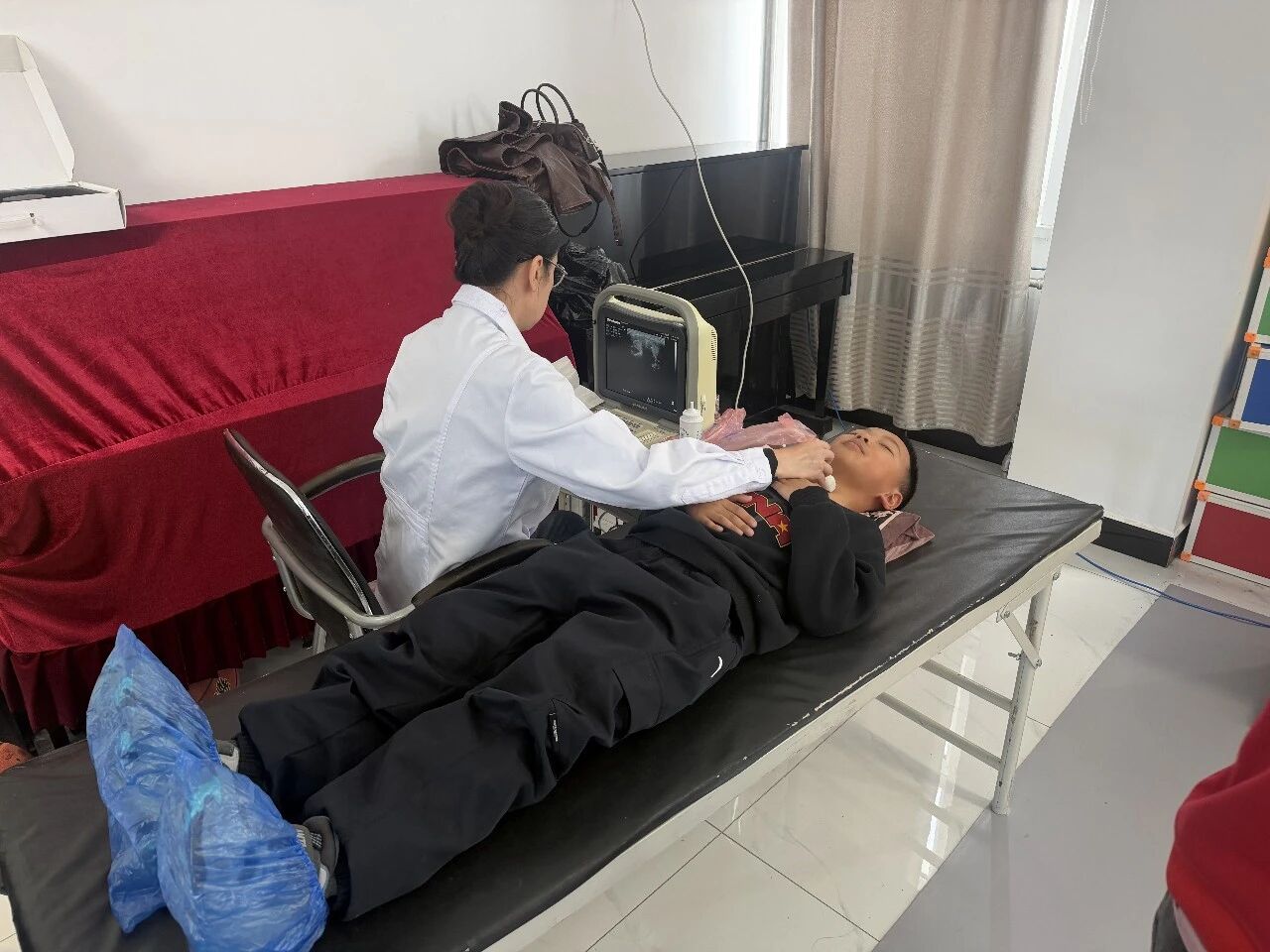 活动中,疾控中心专门聘请呼中区人民医院彩超室医生,为该校8至10岁儿童进行甲状腺容积专项检查。医生严格按照检测规范操作,细致为每位儿童完成超声检查,并认真记录检测数据,精准掌握辖区儿童甲状腺健康状况,为后续碘缺乏病防治工作提供了科学的数据支撑。