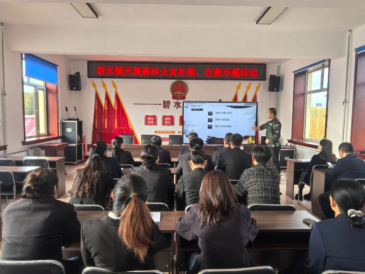 讲座最后,讲解员呼吁大家切实履行森林防火责任,同时积极向家人和邻里宣传防火知识,共同营造“森林防火、人人有责”的良好氛围。碧水镇将持续开展森林防火宣传教育活动,全面提升全镇综合防火能力,守护绿水青山。